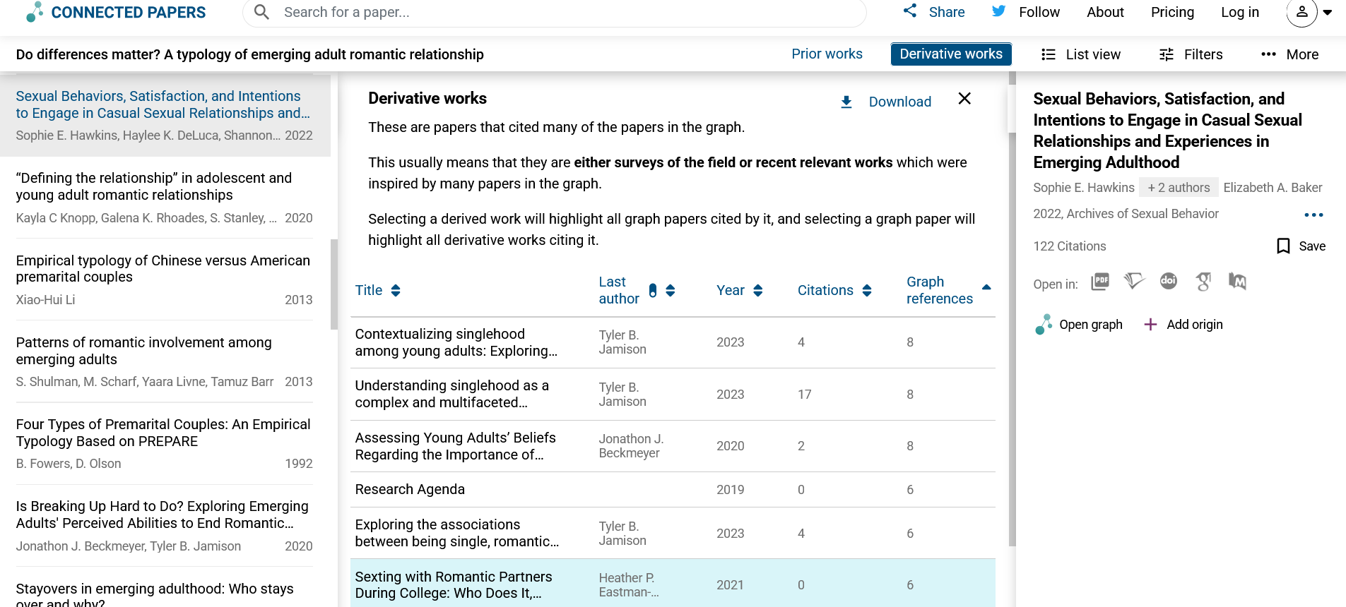 Connected Papers offre une visualisation accessible et rapide des articles liés bibliographiquement à un texte de départ, mais son intérêt reste très limité pour des recherches en sciences sociales sur des objets complexes, comme les normes sexuelles ou les formes relationnelles chez les jeunes adultes.